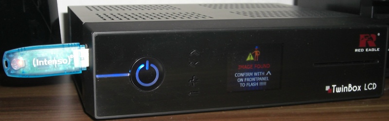 - Wenn der Update-Stick korrekt erkannt wird erscheint folgendes im Display