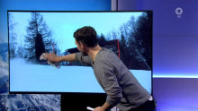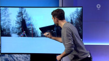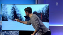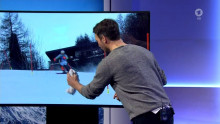 Was man hier sieht ist kaum zu glauben: Der Experte im Studio analysiert eine Fahrt am TV-Bildschirm. Er malt mit EDDING und Putzlappen auf den Bildschirm!!!!!!!!!!!!!!