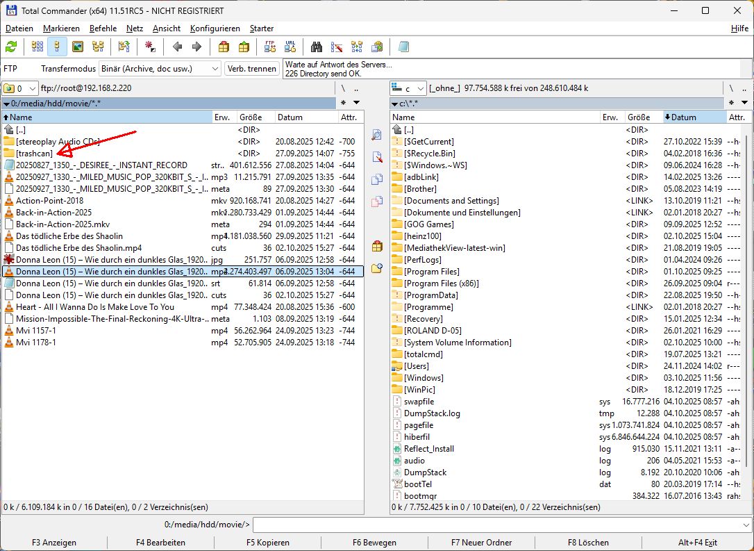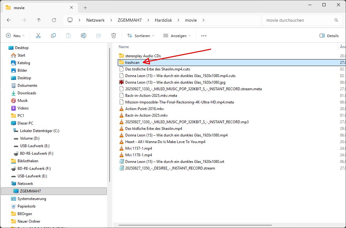 Festplatte ist fast voll, obwohl Aufnahmen gelöscht